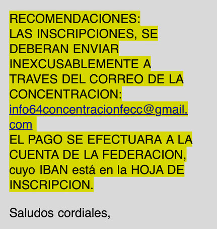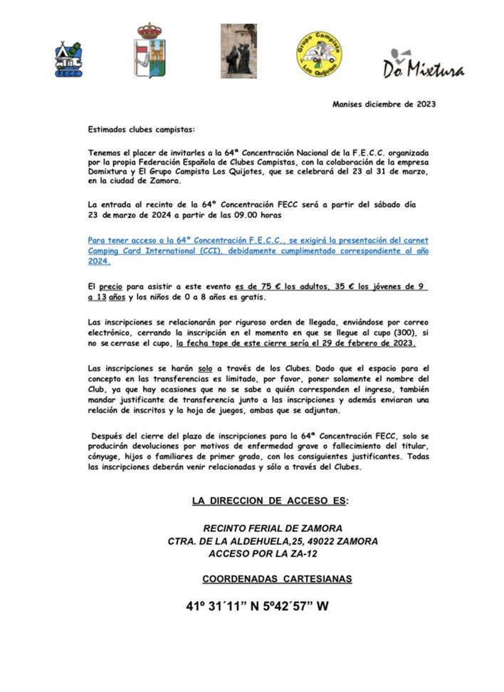 Cada boletín de inscripción se debe enviar por e-mail a clubcampistacierzo@gmail.com, junto con el pago a la cuenta corriente de nuestro Club, que es de Caixabank. Posteriormente, nosotros haremos una transferencia conjunta por el importe de todos los inscritos a la cuenta corriente del club campista organizador, junto con los boletines de inscripción de cada uno de los socios inscritos, así como una relación de los mismos.