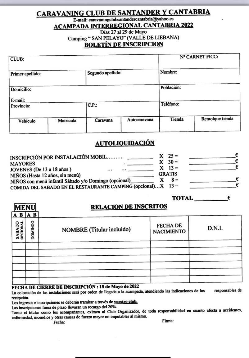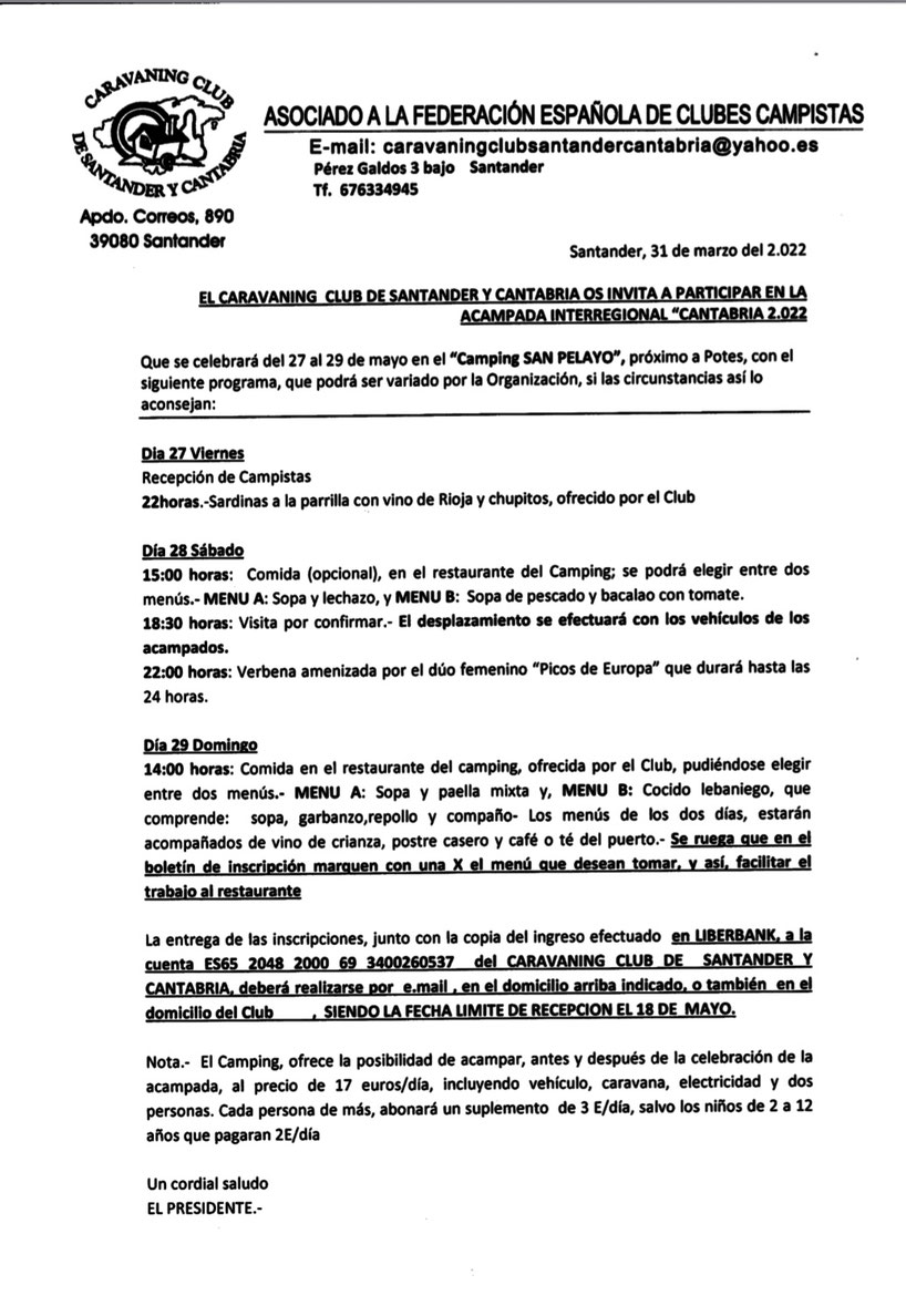 RECIBIDA HOY (21/4/22) INVITACIÒN DEL CARAVANING CLUB DE SANTANDER Y CANTABRIA.