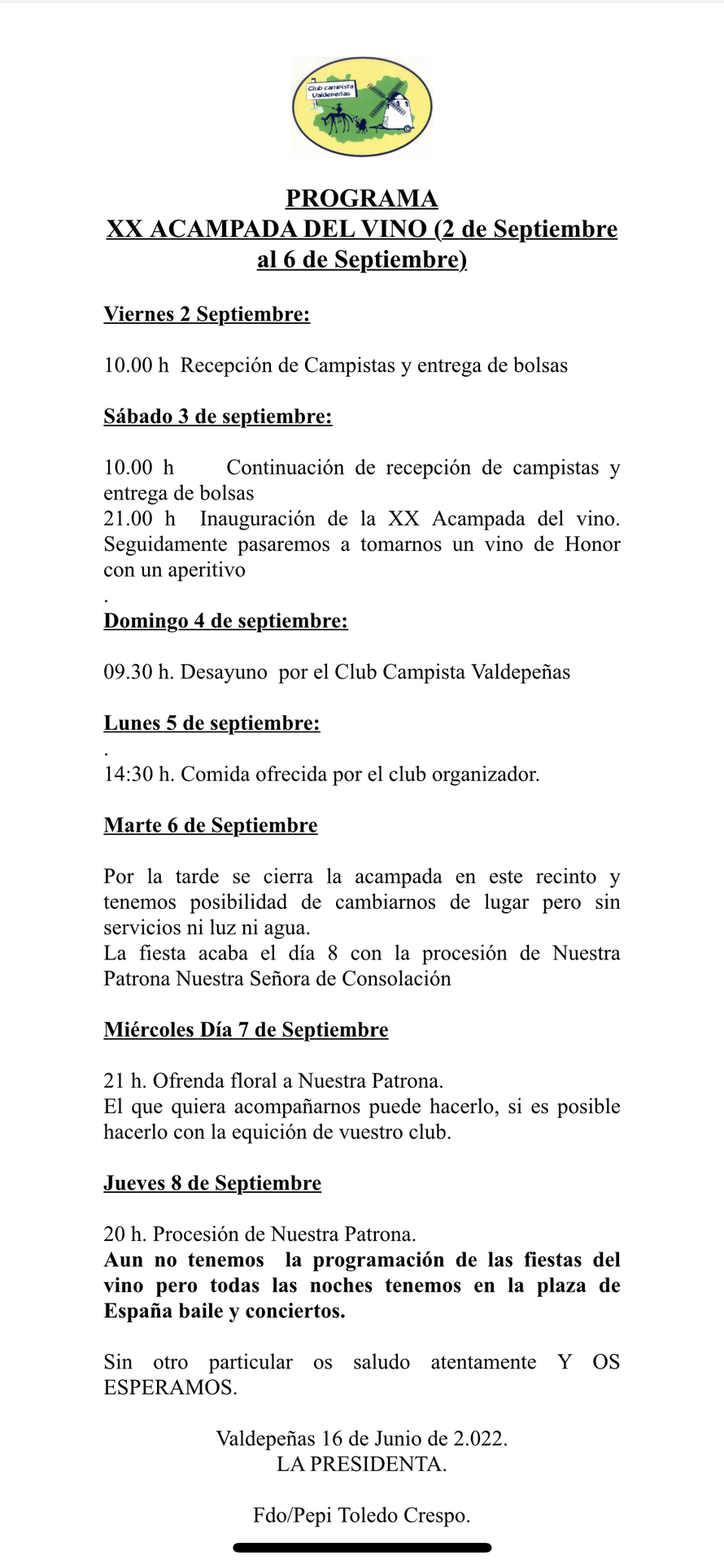 El club campista de Valdepeñas quiere volver a retomar su acampada del vino después de estos dos años triste, y por supuesto sin vosotros esto no sería posible.